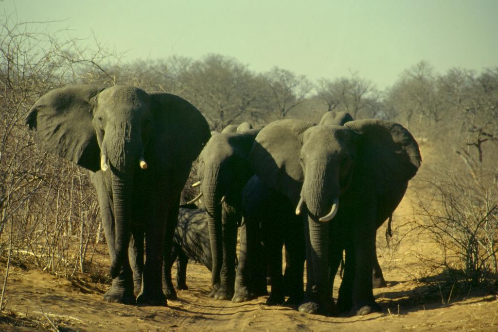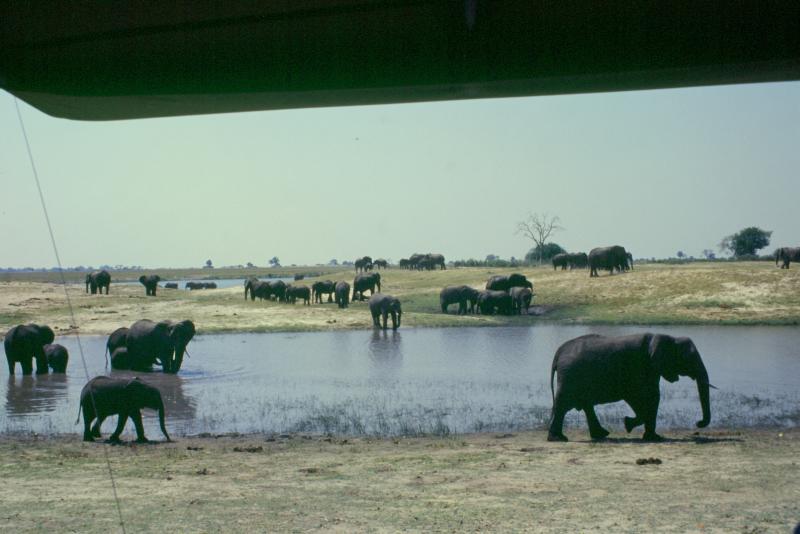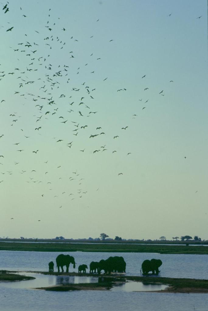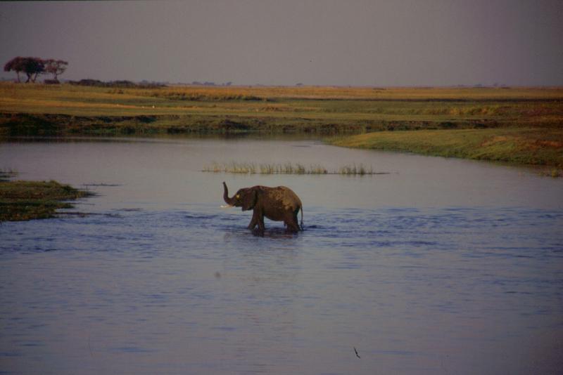 Am Abend kamen ein paar Elefanten um ein Bad im Chobe zu nehmen... | ![]() |