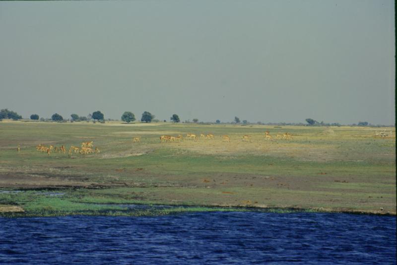 Wir genossen diese fantastischen Anblicke am Chobe - der gar die Grenze zu Namibia bildet. Auf der Namibischen Seite konnten wir riesige Herden verschiedener Antilopen sehen wie diese Impalas. |
