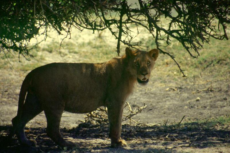 Zur Mittagszeit fanden wir noch eine Gruppe Löwen im Schatten einiger Bäume - Sie schauten uns an als fragten sie ob wir nicht ein wenig mit ihnen spielen wollten... | ![]() |