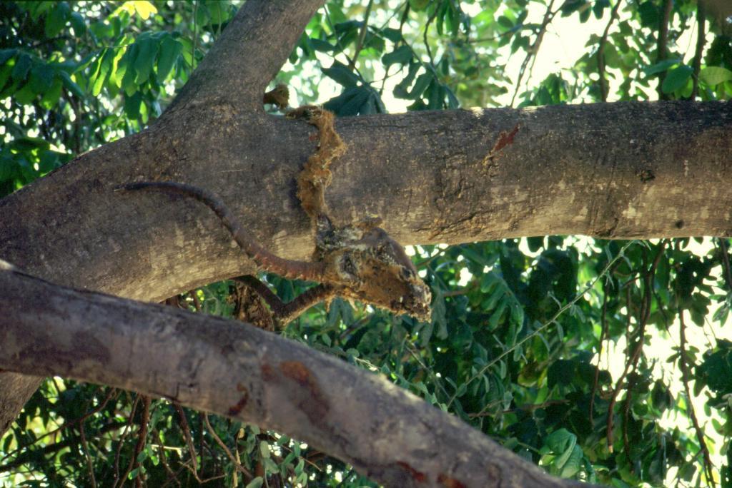 ein Kudu-Weibchen mit ihren Satelliten-Ohren, die auf uns zeigten Rechts: die Überreste eines Leoparden-Mittagessens |