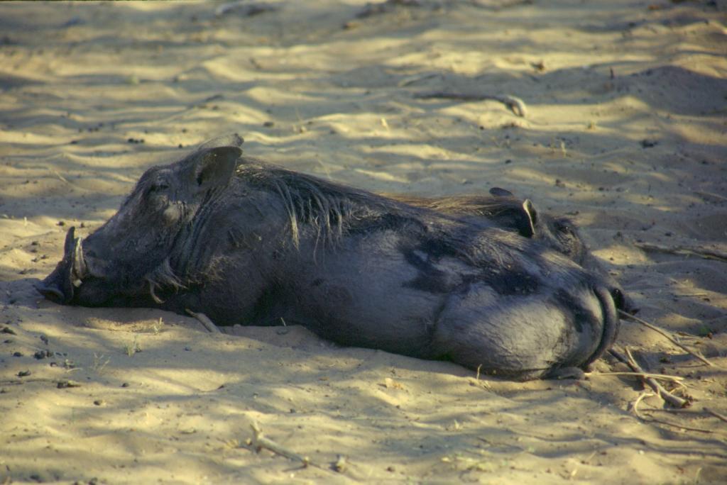 Fast jeden Tag sahen wir ein paar Warzenschweine - dieser hier döste in der Mittagshitze | ![]() |